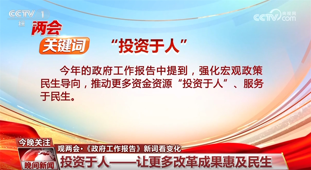 今年的政府工作報告中提到,強化宏觀政策民生導向,推動更多資金資源“投資于人”、服務于民生。把更多資金資源“投資于人”,就是將資金資源投入人的發(fā)展和保障上,讓更多改革發(fā)展成果直接作用在人身上。報告中,“居民醫(yī)保和基本公共衛(wèi)生服務經費人均財政補助標準分別再提高30元和5元”“城鄉(xiāng)居民基礎養(yǎng)老金最低標準再提高20元”“發(fā)放育兒補貼”等一系列可感可觸的民生福祉,是“投資于人”的具體體現(xiàn)。