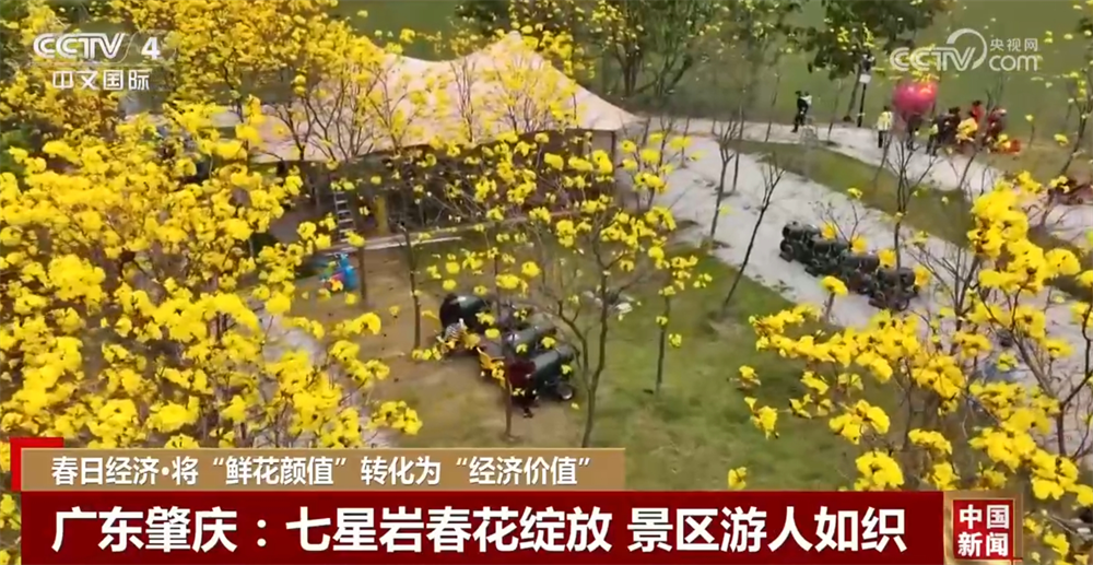 在廣東肇慶七星巖景區(qū),宮粉紫荊、黃花風(fēng)鈴木、櫻花、禾雀花等競(jìng)相綻放。在禾仙島上的黃花風(fēng)鈴木林正值盛放期,金燦燦的花冠與星湖碧波相映成趣。景區(qū)推出門(mén)票優(yōu)惠等舉措,吸引游客來(lái)賞花。