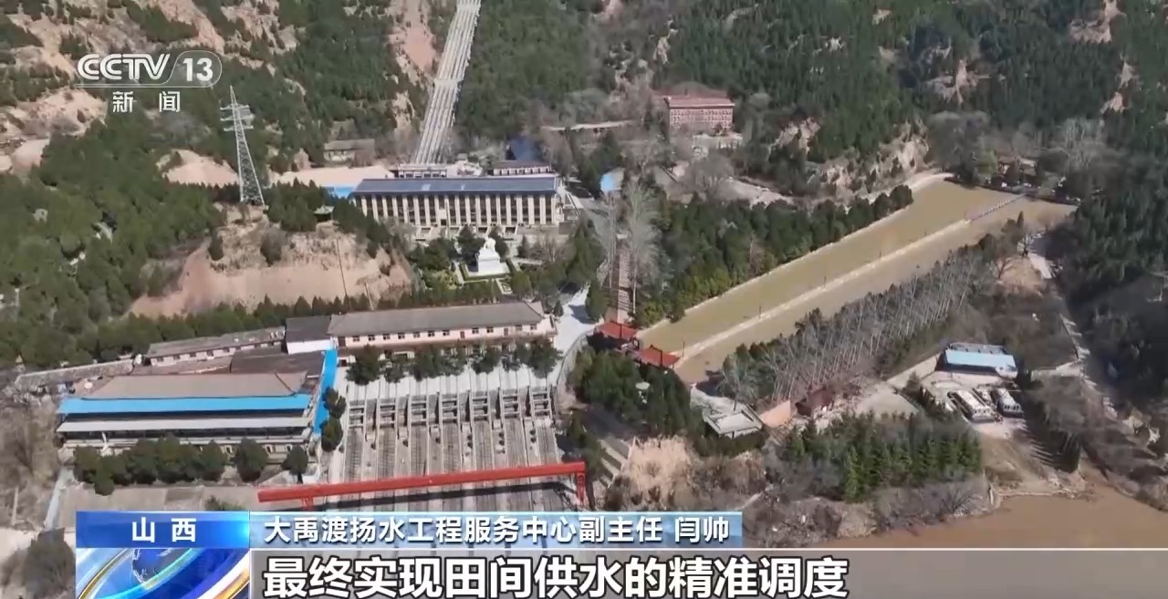 大禹渡灌區(qū)緊鄰黃河,經(jīng)過6級提水,黃河水最終爬升346米,沿著管道一路泵入總干渠。經(jīng)總干渠分水后,河水繼續(xù)分流至灌區(qū)465條干、支、斗渠,精準流入農(nóng)田。村民們不僅能用手機下單水票,還能看到閘口的用水情況,讓每一滴流入農(nóng)田的水都流得明明白白。