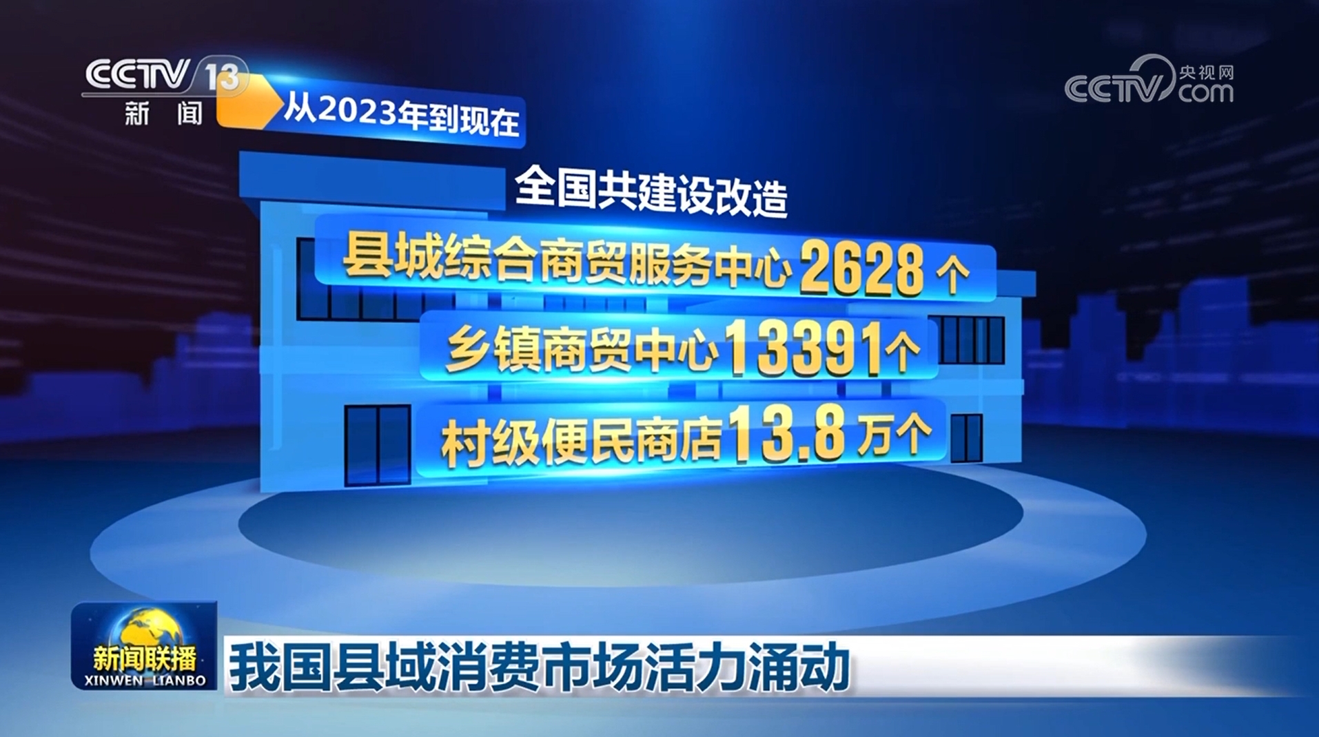 商務(wù)部數(shù)據(jù)顯示,從2023年到現(xiàn)在,全國共建設(shè)改造縣城綜合商貿(mào)服務(wù)中心2628個(gè)、鄉(xiāng)鎮(zhèn)商貿(mào)中心13391個(gè)、村級(jí)便民商店13.8萬個(gè)。