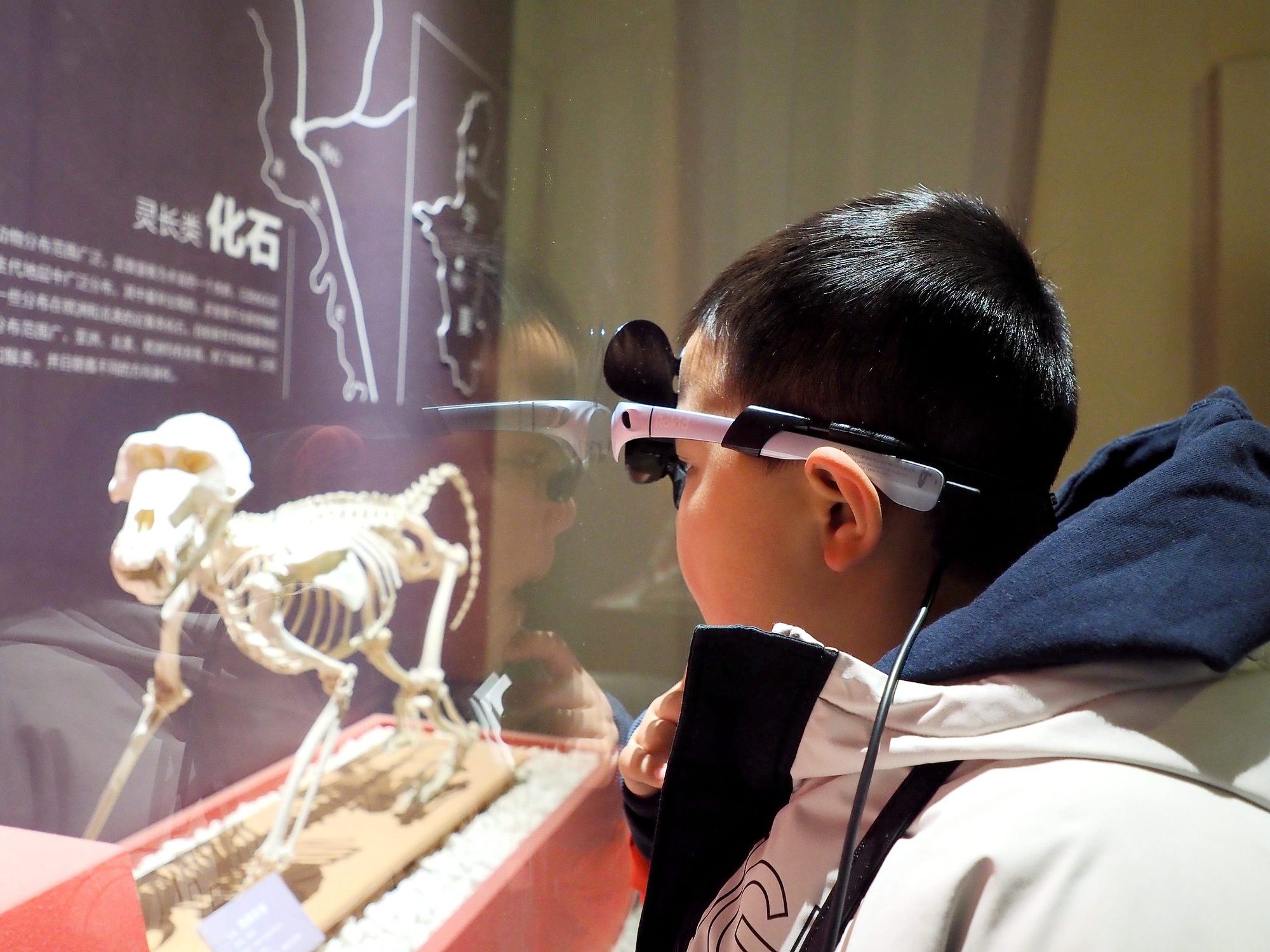 小朋友通過(guò)AR智能導(dǎo)覽眼鏡參觀(guān)展覽