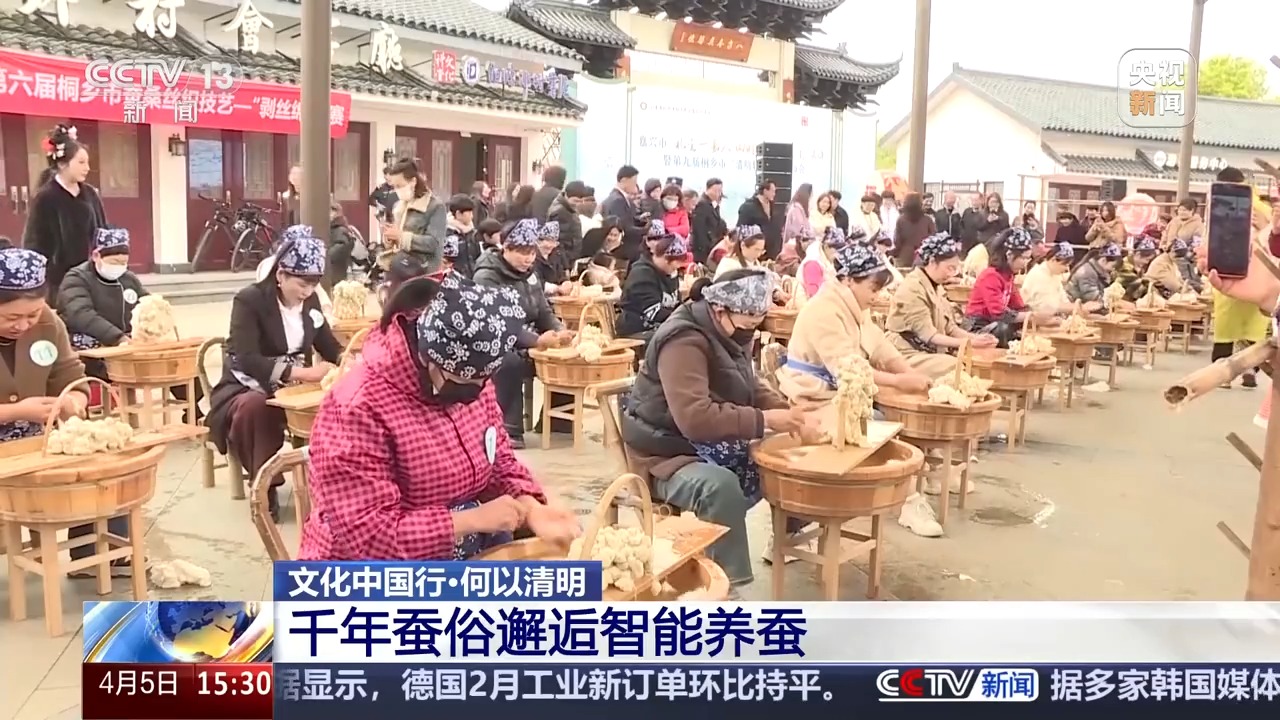 在浙江,流傳著一句俗語——“清明大如年”。浙江是我國絲綢生產(chǎn)和貿(mào)易的中心,清明之后,當?shù)匦Q農(nóng)就會開始新一年的忙碌,所以人們通過節(jié)慶活動,祈盼養(yǎng)蠶豐收。隨著現(xiàn)代科技的發(fā)展,在現(xiàn)代化的養(yǎng)蠶工廠里,采桑養(yǎng)蠶的活動已經(jīng)可以擺脫節(jié)氣的束縛,實現(xiàn)了“季季有春天”。