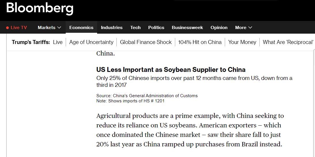 報道稱,美國作為中國大豆供應商的重要性下降進一步凸顯了中國的戰(zhàn)略調整。據(jù)中國海關總署數(shù)據(jù),過去12個月,中國僅25%的進口大豆來自美國,美國在中國大豆進口市場份額進一步收縮。這為北京爭取更多時間,直至雙方重回談判桌。