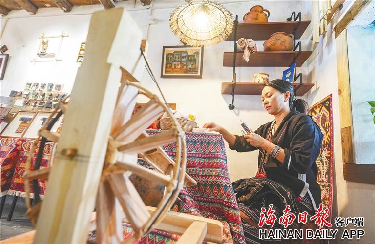 東方市八所鎮(zhèn)北黎村,村民在店內(nèi)織錦。海南日報(bào)全媒體記者陳元才 攝