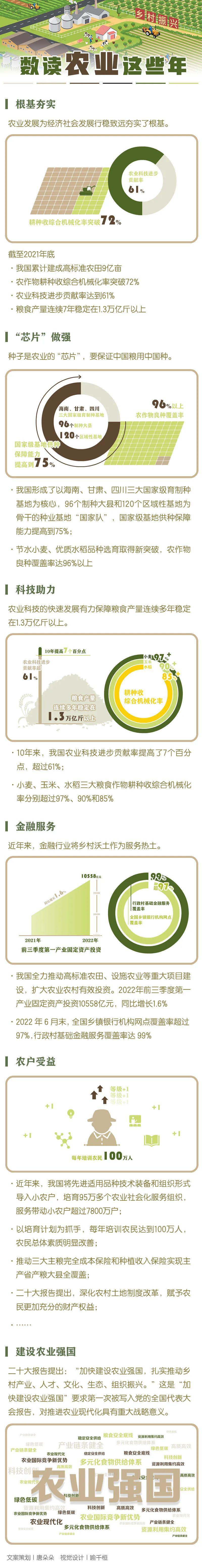 ◆ 10年來,我國(guó)農(nóng)業(yè)科技進(jìn)步貢獻(xiàn)率提高了7個(gè)百分點(diǎn),超過61%;小麥、玉米、水稻三大糧食作物耕種收綜合機(jī)械化率分別超過97%、90%和85%,農(nóng)業(yè)科技的快速發(fā)展有力保障糧食產(chǎn)量連續(xù)多年穩(wěn)定在1.3萬(wàn)億斤以上。