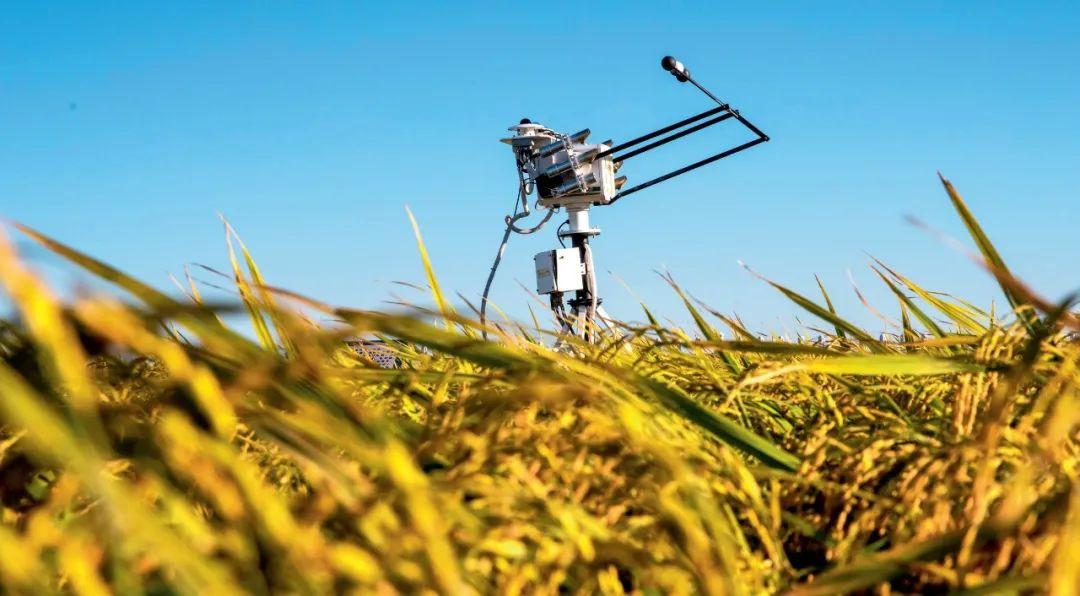 黑龍江省富錦市萬(wàn)畝水稻科技示范園內(nèi)的氣象監(jiān)測(cè)設(shè)備(2022年9月2日攝) 張濤攝 / 本刊