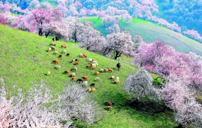 新疆新源縣那拉提杏花谷杏花盛開。楊曉千攝