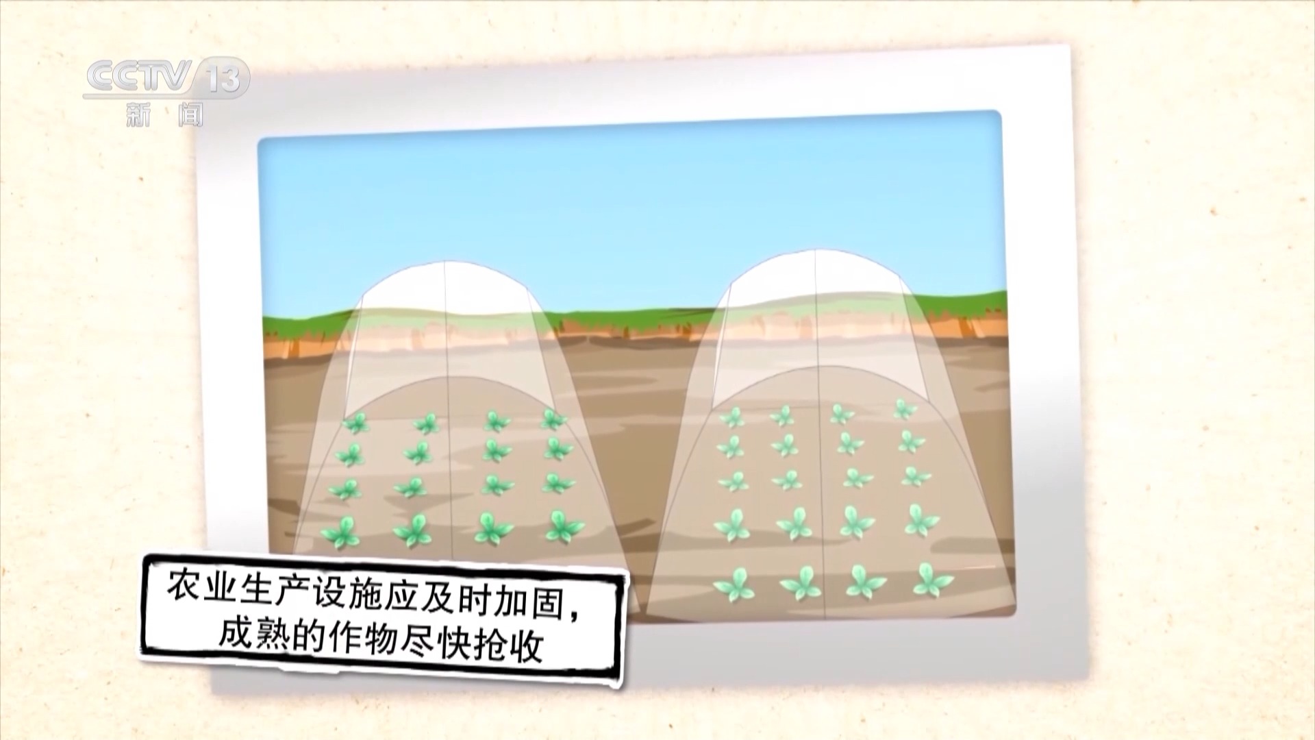 農(nóng)業(yè)生產(chǎn)設施應及時加固,成熟的作物盡快搶收。
