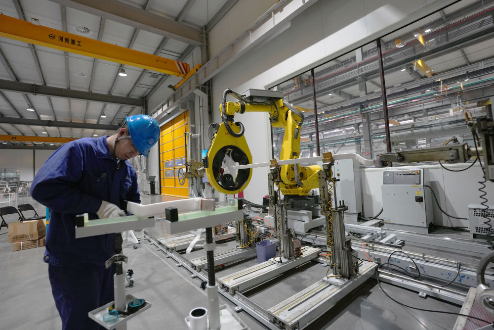 2月26日,在哈爾濱電機廠有限責任公司線圈分廠智能制造車間,工人與智能設(shè)備在進行協(xié)同加工生產(chǎn)作業(yè)。新華社記者 王松 攝