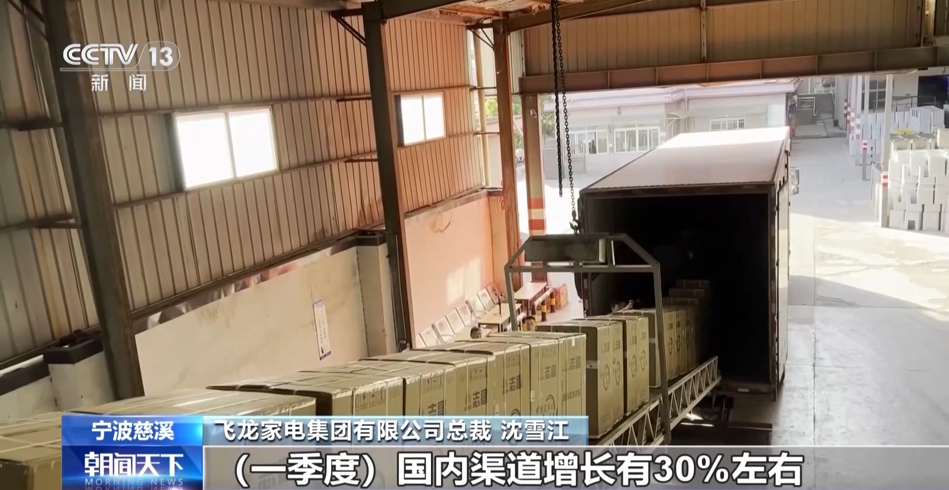 飛龍家電集團(tuán)有限公司總裁 沈雪江:我們每天都有貨發(fā)往上海、北京、鄭州這些地方。由于國(guó)補(bǔ)政策,一季度國(guó)內(nèi)渠道增長(zhǎng)有30%左右。