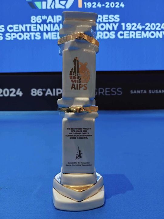 在2024年4月29日舉行的國際體育記者協(xié)會頒獎典禮上,成都大運會獲得2023年度綜合賽事最佳媒體設施服務獎。新華社發(fā)