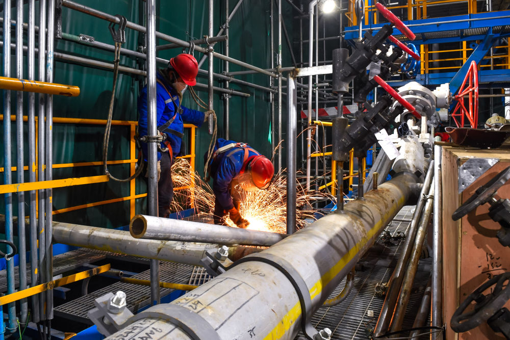 2月12日,工人在位于吉林省吉林市的中國(guó)石油吉林石化公司煉油化工轉(zhuǎn)型升級(jí)項(xiàng)目120萬(wàn)噸/年乙烯裝置建設(shè)現(xiàn)場(chǎng)施工作業(yè)。新華社記者 許暢 攝