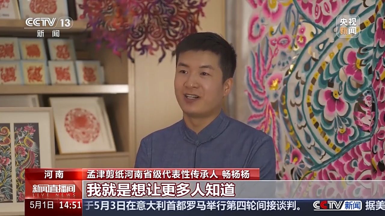 孟津剪紙河南省級代表性傳承人 暢楊楊:傳統(tǒng)的技藝是我們的根,是我們的魂。作為一名剪紙非遺代表性傳承人,我希望它能夠一直流傳下去,在不同時代綻放出不同的美。