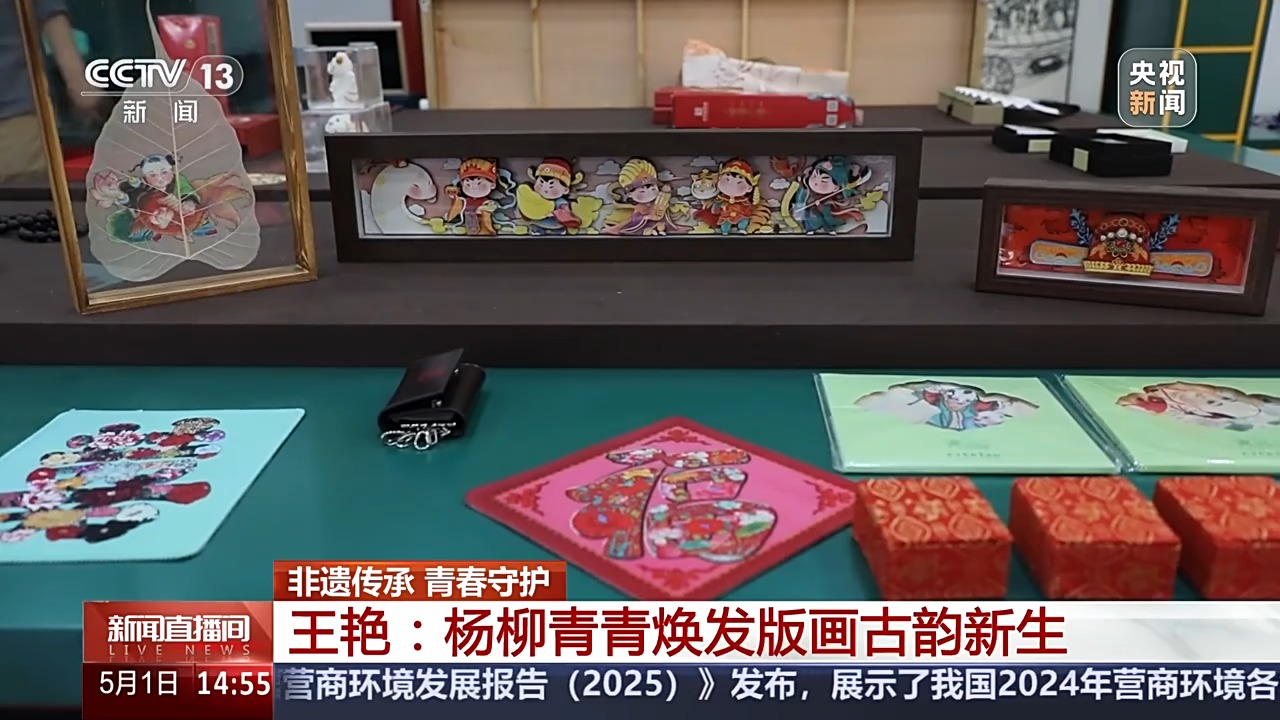 王艷在“老版復(fù)生”過程中,拆解傳統(tǒng)技法,比如畫訣中短胳膊短腿是多短?小鼻子大眼睛的比例怎樣會更好?她一一詳細記錄,貢獻了青年傳承人的“新民間經(jīng)驗”。如今,古版年畫中的楊柳青元素也被開發(fā)成各式新潮的文創(chuàng)產(chǎn)品,“過年才貼的畫”變成了“身邊常見的畫”,讓年輕的消費者愛不釋手。