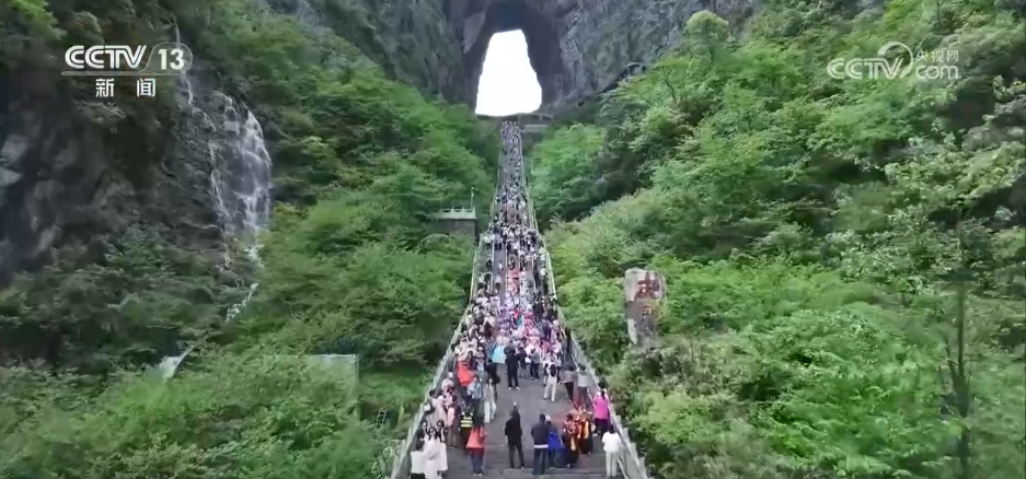 在湖南張家界天門(mén)山景區(qū),“五一”假期開(kāi)展了非遺民俗秀活動(dòng)。民俗民間藝人們開(kāi)展非遺巡游,表演了土家舞獅、土家三棒鼓、土家梯瑪舞等具有濃郁土家族特色的節(jié)目,吸引中外游客駐足觀看。