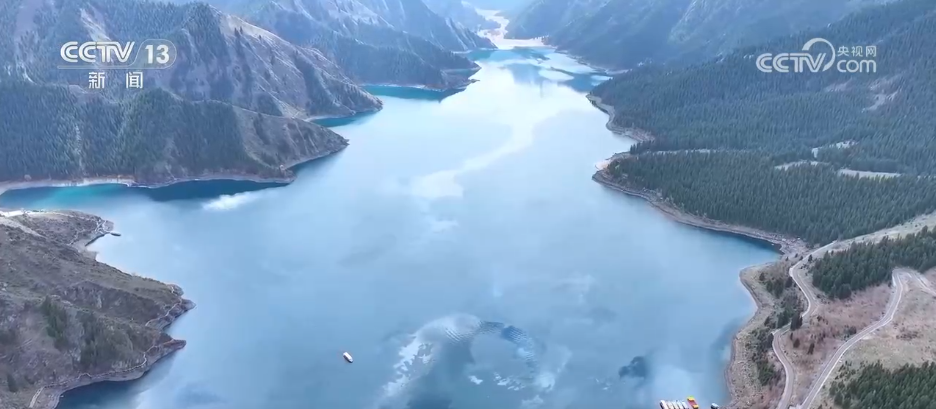每年冬天,海拔1900多米的天山天池湖面封凍,封凍期達(dá)100多天。“五一”前夕,新疆阜康市天山天池景區(qū)冰雪消融,正式迎來(lái)“開(kāi)湖”。