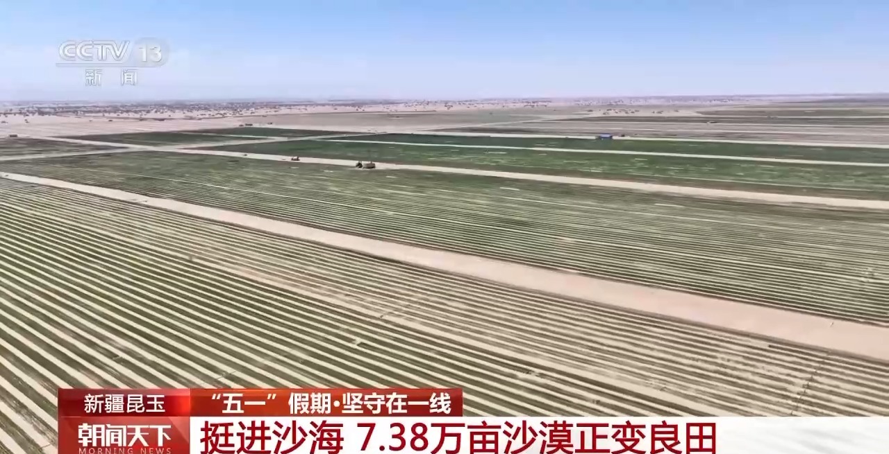 當(dāng)大多數(shù)人享受悠閑的假期時(shí),鏖戰(zhàn)在沙海深處的勞動(dòng)者沒(méi)有停歇。在位于塔克拉瑪干沙漠南緣的新疆昆玉市,7.38萬(wàn)畝土地開(kāi)發(fā)建設(shè)項(xiàng)目進(jìn)入攻堅(jiān)階段,上百臺(tái)裝載機(jī)、平地機(jī)來(lái)回穿梭進(jìn)行平沙作業(yè)。