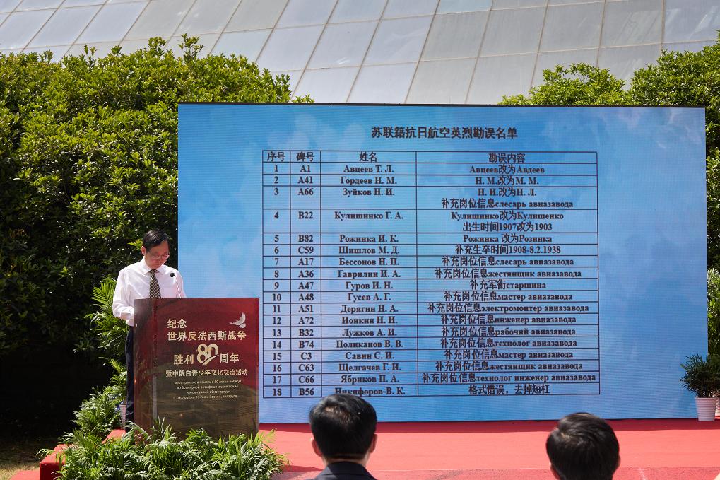 “我們期待與俄方相關部門、機構和民間組織一道,尋找更多蘇聯(lián)籍抗日航空英烈史料,讓這些為了正義與和平而犧牲的年輕人的事跡,永遠記載在歷史的豐碑上?!毖ι徴f。