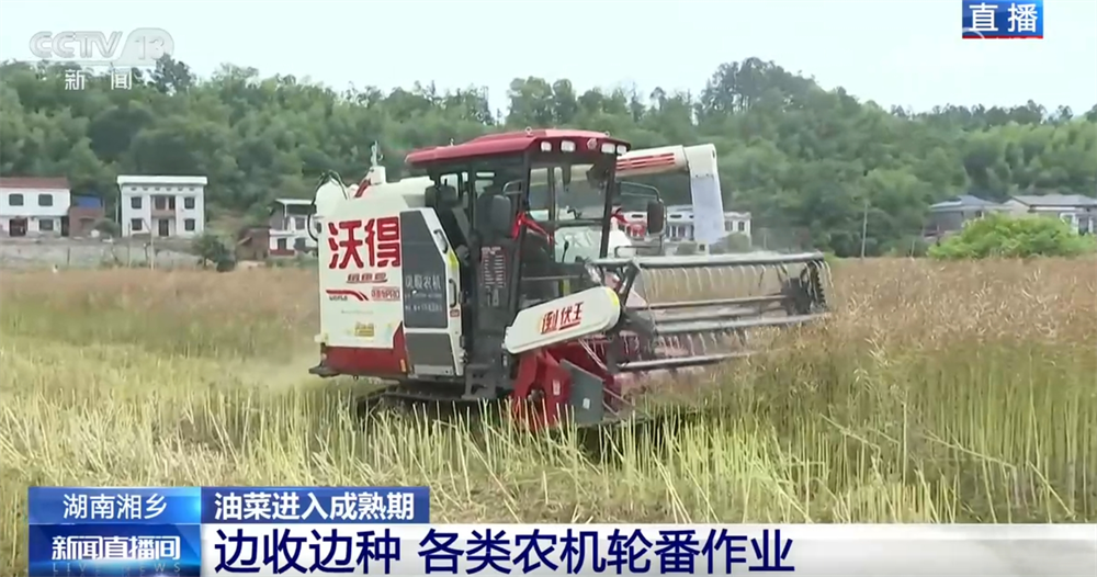 在一眼望不到頭的田里,各類農(nóng)機(jī)正在火熱作業(yè)。首先,不少油菜籽已經(jīng)成熟了,不遠(yuǎn)處,專業(yè)的收割機(jī)正在迅速采收,確保顆粒歸倉(cāng)。種植戶介紹,今年得益于氣候和農(nóng)田改造,油菜籽的畝產(chǎn)有所增加。