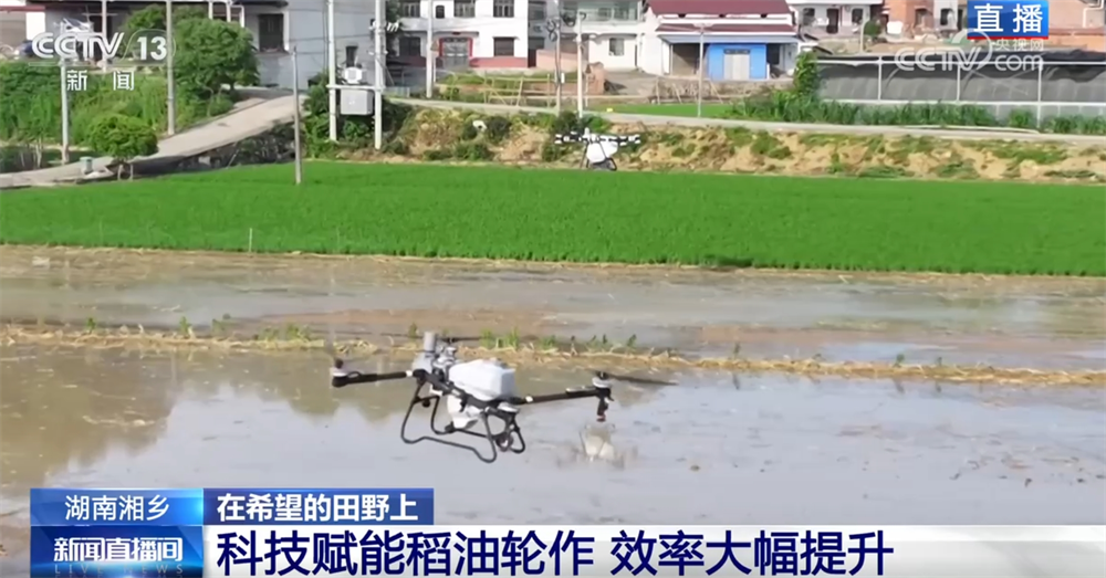 在這個(gè)階段,還有一件非常重要的工作就是施肥。眼下,施肥已經(jīng)很少依靠人工了。現(xiàn)場(chǎng),大型的農(nóng)業(yè)無(wú)人機(jī)正在作業(yè),肥料均勻?yàn)⒃谔锢?。無(wú)人機(jī)還能做到自動(dòng)避障、自動(dòng)調(diào)節(jié)噴灑量,配備光譜儀還可以檢測(cè)莊稼的長(zhǎng)勢(shì),作業(yè)1畝地只需要不到20秒。