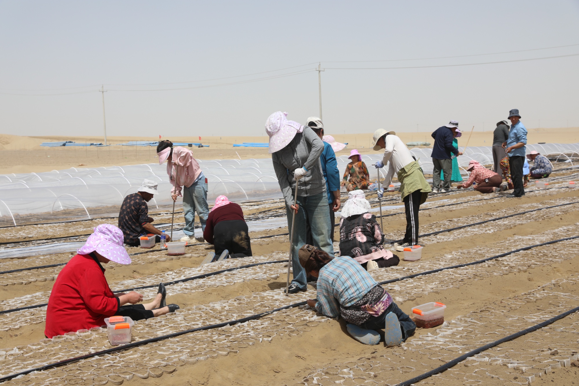 目前,該公司在喀瓦克鄉(xiāng)防沙地的平整和育苗工作已完成65%,已育種250萬株灰棗苗,預(yù)計5月10日開始將育苗基地育好的苗移栽至該片防沙田。