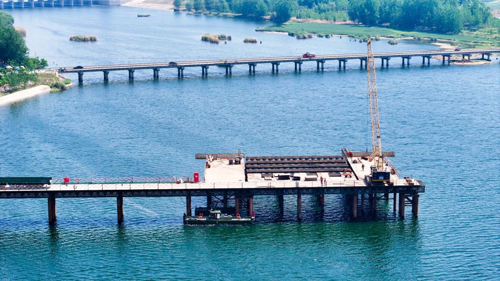 國家重點(diǎn)項(xiàng)目濰(坊)宿(遷)高速鐵路項(xiàng)目承建方正搶抓工期與節(jié)點(diǎn),穩(wěn)步推進(jìn)標(biāo)段施工。4月30日,在濰宿高鐵山東郯城段,中鐵上海局的工作人員在進(jìn)行沭河特大橋施工(無人機(jī)照片)。新華社記者 郭緒雷 攝
