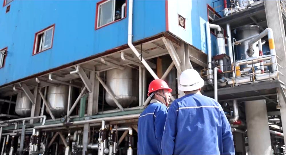 鑫岳化工集團(tuán)的工作人員在廠(chǎng)房前。新華社記者 王歡 攝