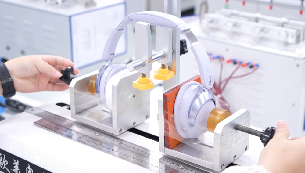 廣東眷蜀科技有限公司車(chē)間內(nèi),員工對(duì)耳機(jī)產(chǎn)品進(jìn)行技術(shù)檢測(cè)。受訪(fǎng)者供圖