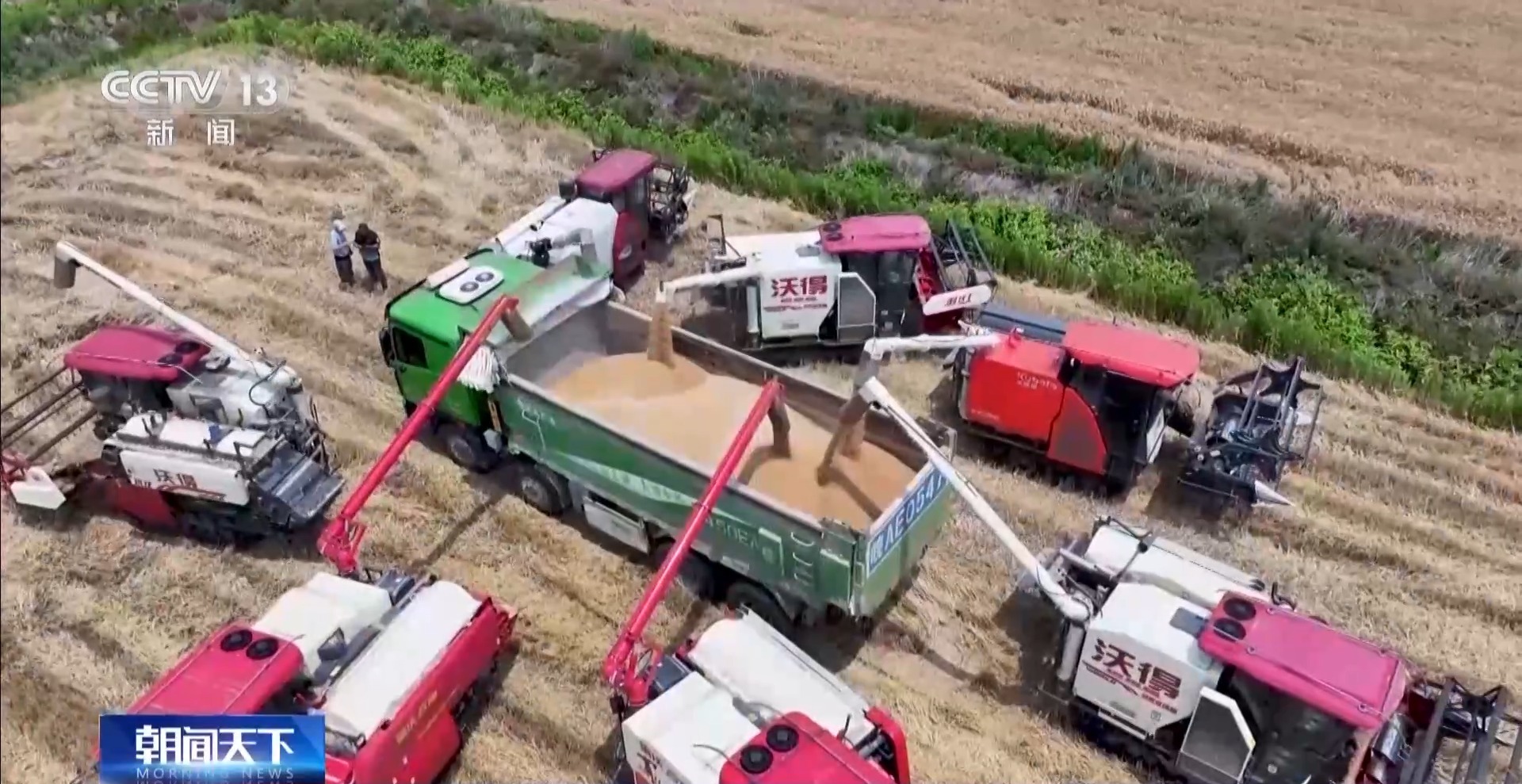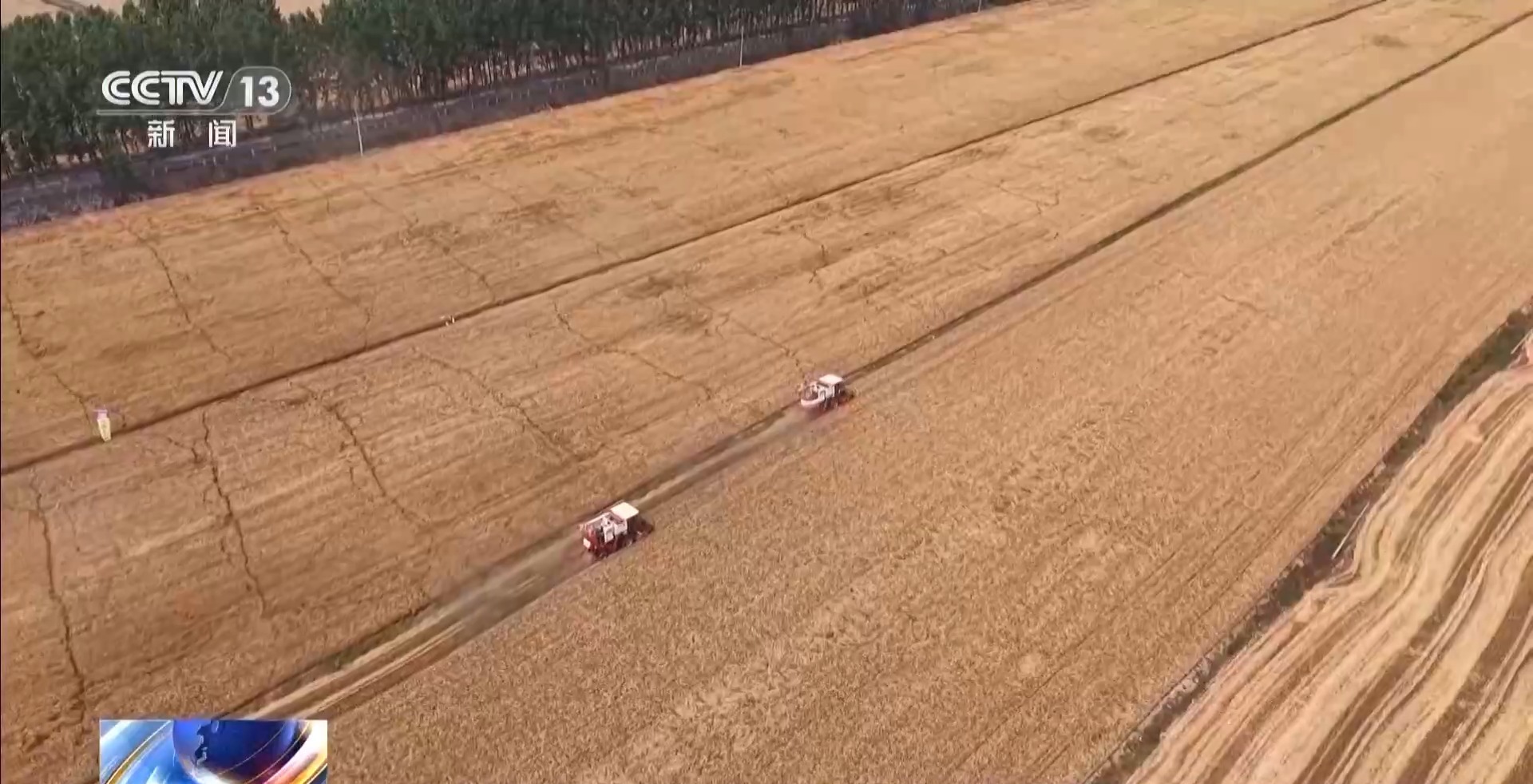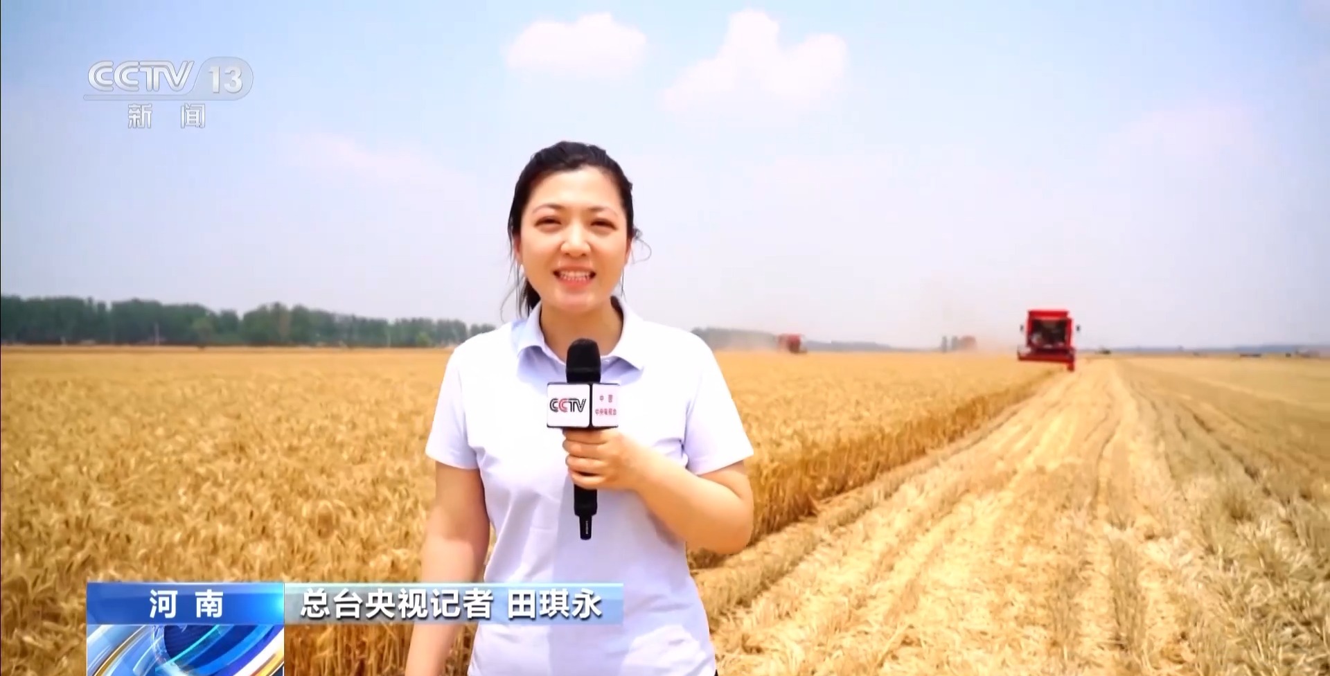 總臺央視記者 田琪永:我現(xiàn)在是在河南省駐馬店市,目前這里的1100多萬畝小麥正大面積集中成熟,當?shù)亟M織了3萬多臺聯(lián)合收割機抓緊搶收,確保小麥收在適收期。