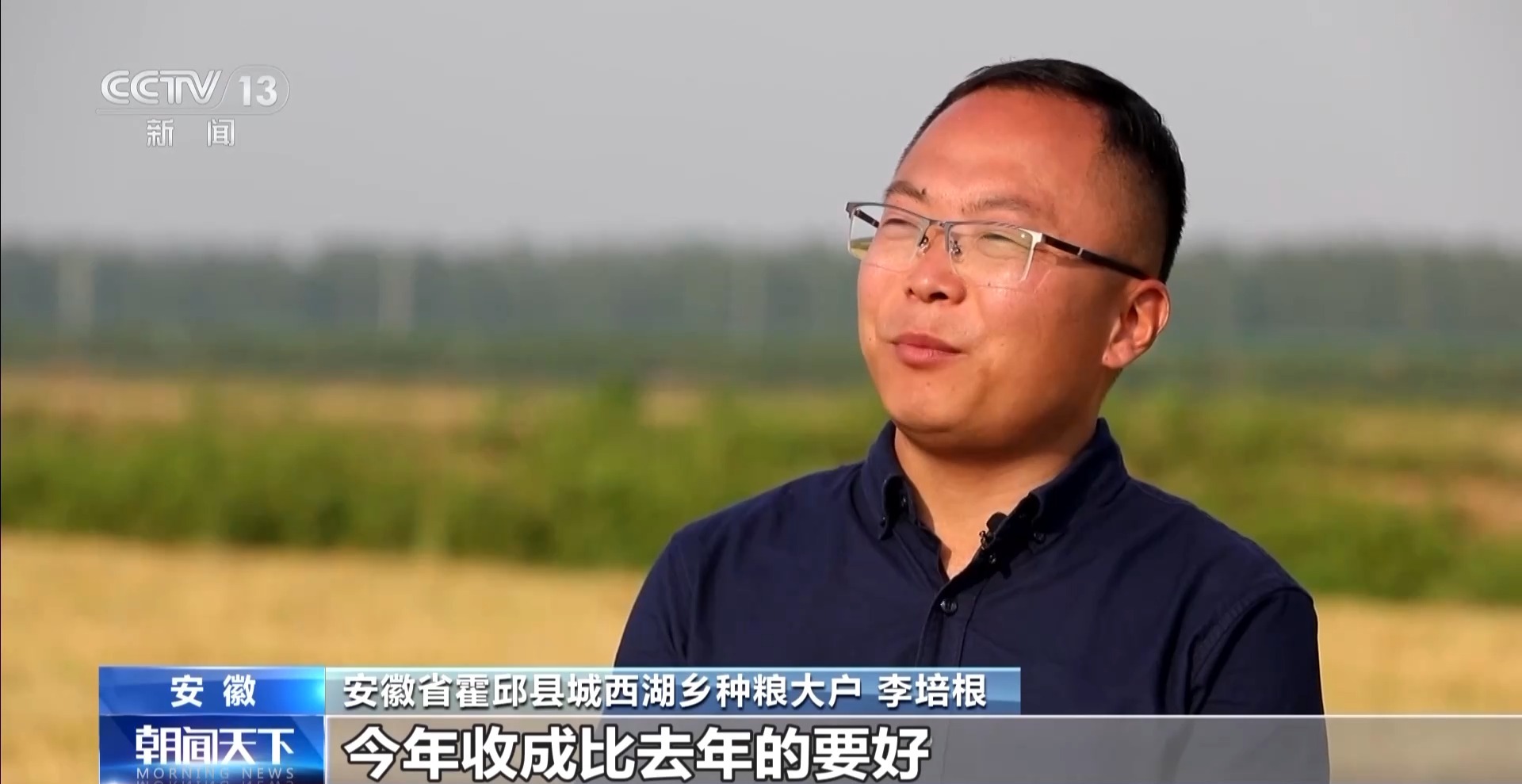 安徽省霍邱縣城西湖鄉(xiāng)種糧大戶 李培根:我們今年種了2000多畝小麥,今年收成要比去年好,每畝地多100多斤,我們一畝地能達到1100多斤。