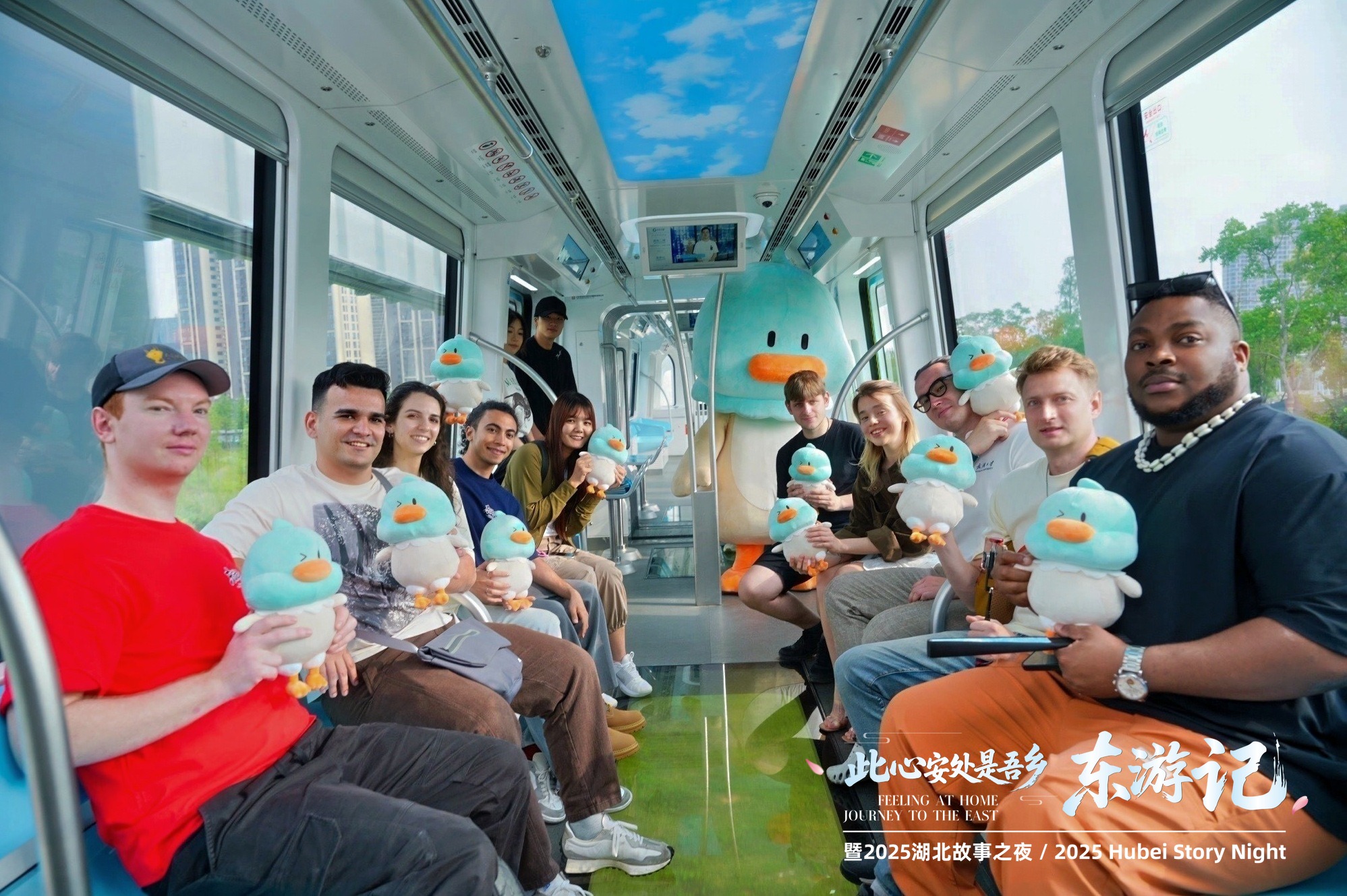 武漢新晉網(wǎng)紅打卡地怎么少得了光谷空軌,在吉祥物青青鴨的帶領(lǐng)下,體驗(yàn)官們踏上了空中交通之旅。270°全景視窗將城市天際線變成流動(dòng)畫卷,無人駕駛系統(tǒng)在空中穿行如科幻大片。這種新奇的乘車體驗(yàn)引得大家連連贊嘆,俄羅斯留學(xué)生可欣興奮的說,“我感覺自己飛起來了,像鳥一樣飄在空中?!?/p>