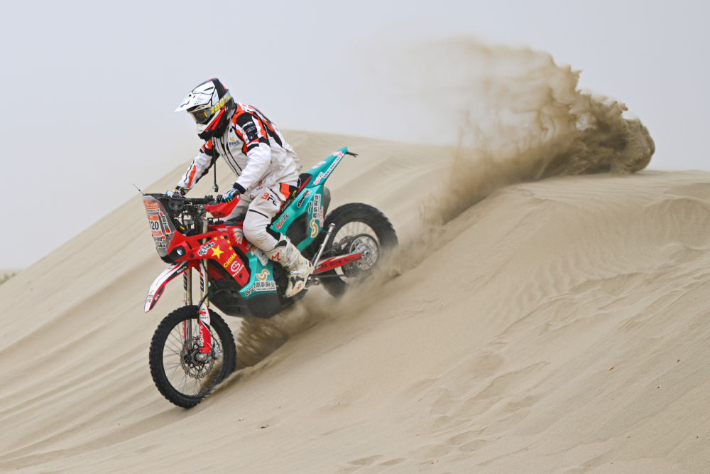 ↑5月28日,久騎控車拉力車隊車手彭楊在第七賽段比賽中
