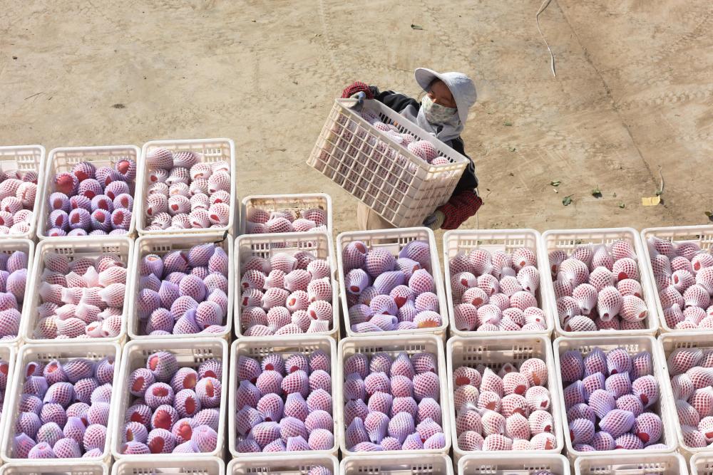 當(dāng)?shù)胤N植的蘋果皮薄肉嫩、甜脆汁多,深受消費者喜愛