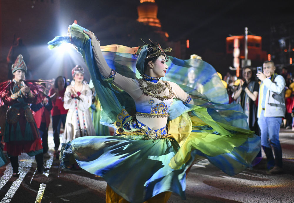 2023年環(huán)塔拉力賽參賽代表參加旅游展示活動。新華社記者 胡虎虎 攝