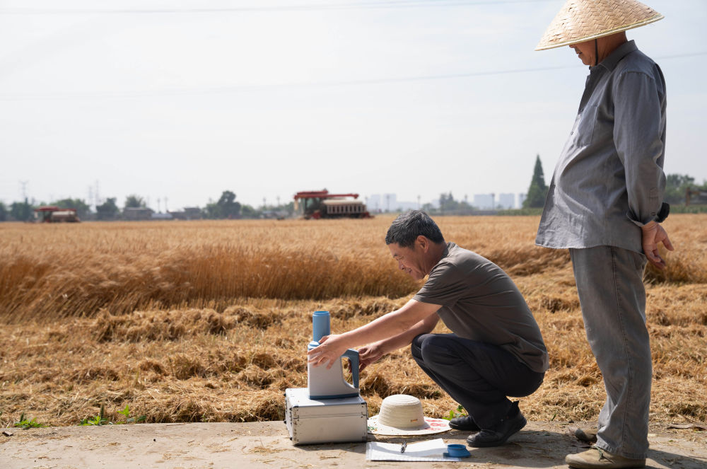 5月15日,工作人員在四川廣漢市南豐鎮(zhèn)雙福村測(cè)量剛收獲小麥的水分。