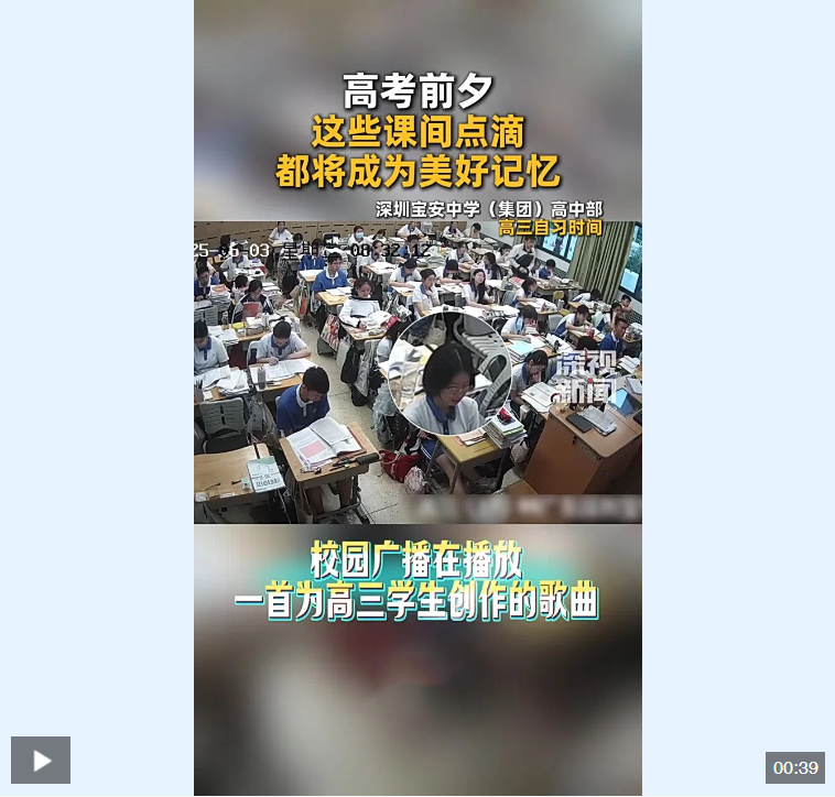 廣播突然響起為高三學生創(chuàng)作的歌曲