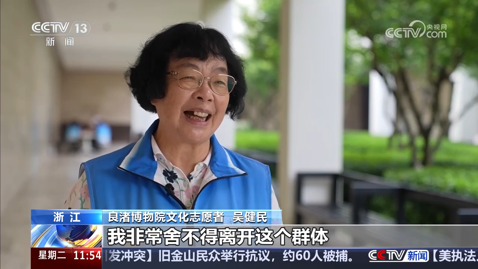 良渚博物院文化志愿者 吳健民:博物館就像一個老年大學(xué)一樣,大家在這個平臺上進(jìn)行交流,互相學(xué)習(xí),非常好的一種氛圍。只要我身體允許的情況下,我非常舍不得離開這個群體。