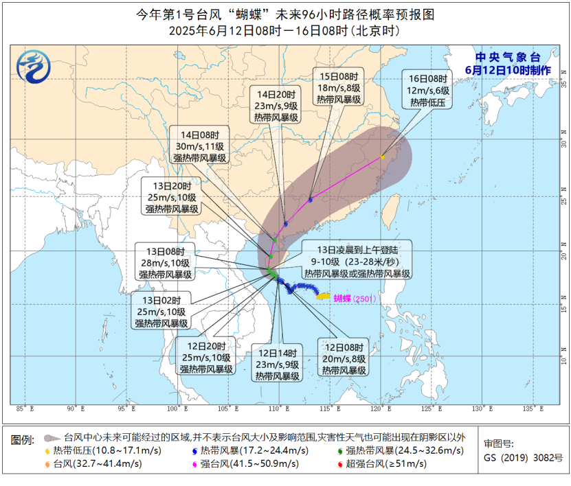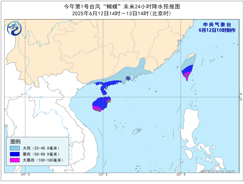 受“蝴蝶”和西南季風疊加影響,12日至14日華南大部將有大到暴雨,局地大暴雨或特大暴雨。南海大部、北部灣、瓊州海峽、西沙群島、南沙群島、中沙群島、廣東沿海、海南島沿海、廣西沿海將有6至8級風,陣風9至10級,臺風中心經(jīng)過的附近海域陣風可達12至13級。