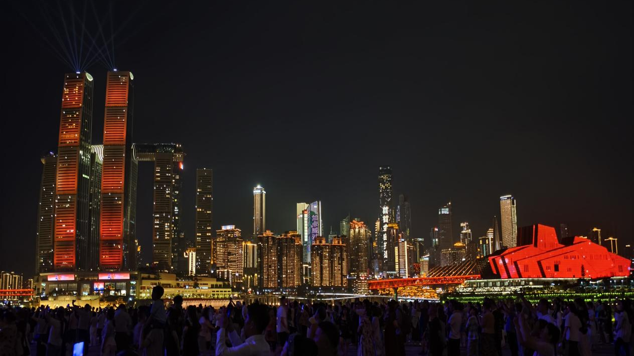 像徐先生一樣的游客數(shù)不勝數(shù),一場無人機燈光秀,為“兩江四岸”的天臺店鋪帶來了空前的流量。在南濱路、長濱路、朝天門、江北嘴等地的江岸邊,以及各個高樓大廈的觀景臺上,擠滿了來自五湖四海的游客。