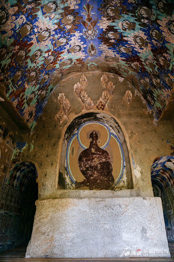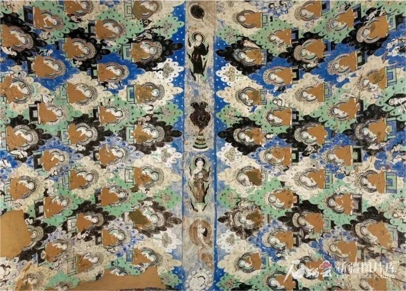 敦煌莫高窟203窟,兩側墻壁上排列密集的小佛像,與龜茲壁畫異曲同工。資料圖。