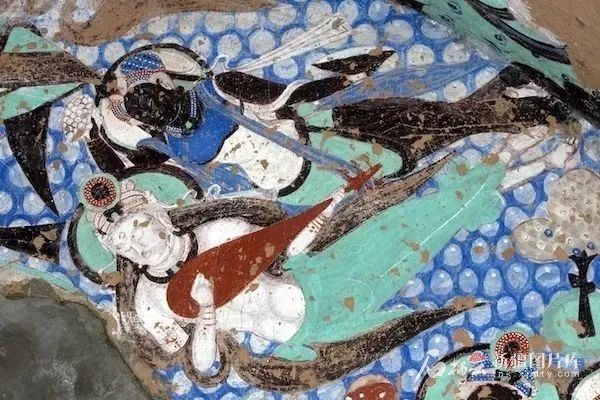 克孜爾石窟壁畫中的伎樂天。資料圖