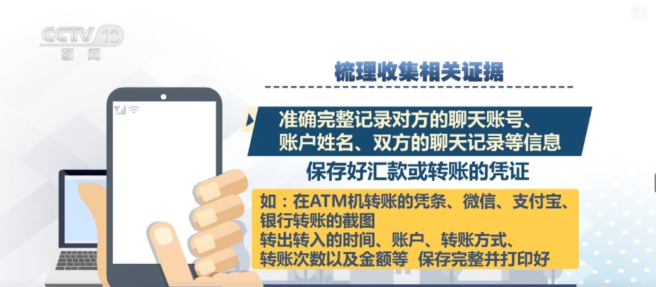 然后記住抓緊梳理收集相關(guān)證據(jù),準(zhǔn)確完整記錄對(duì)方的聊天賬號(hào)、賬戶姓名、雙方的聊天記錄等信息;保存好匯款或轉(zhuǎn)賬的憑證,如在ATM機(jī)轉(zhuǎn)賬的憑條、微信、支付寶、銀行轉(zhuǎn)賬的截圖;轉(zhuǎn)出轉(zhuǎn)入的時(shí)間、賬戶、轉(zhuǎn)賬方式、轉(zhuǎn)賬次數(shù)以及金額等,保存完整并打印好。最后,您需要盡快前往最近的派出所,進(jìn)行現(xiàn)場報(bào)案。在這里,您要配合公安機(jī)關(guān)做好詢問筆錄,提供相關(guān)證據(jù)。