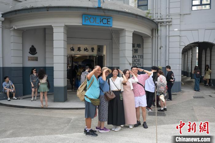 5月20日,香港特區(qū)政府“發(fā)展旅游熱點工作組”公布包括開放舊油麻地警署在內(nèi)的9個旅游熱點項目,希望給訪港旅客帶來新體驗。圖為訪客在舊油麻地警署前“打卡”。(資料圖) 中新社記者 陳永諾 攝