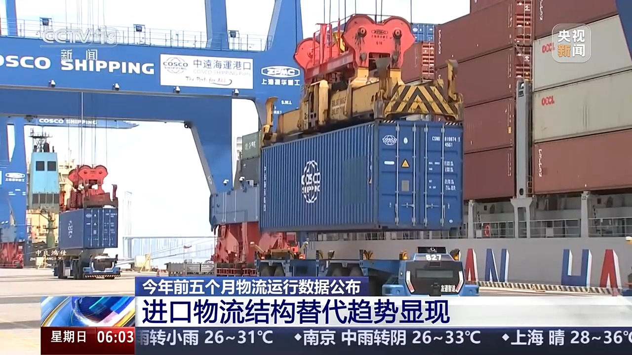 1—5月份,進口物流總額同比下降4.1%。