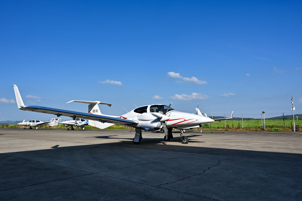 7月3日,在安徽省蕪湖市灣沚區(qū)航空小鎮(zhèn),一架通航飛機準備起飛。新華社記者 張鋮 攝