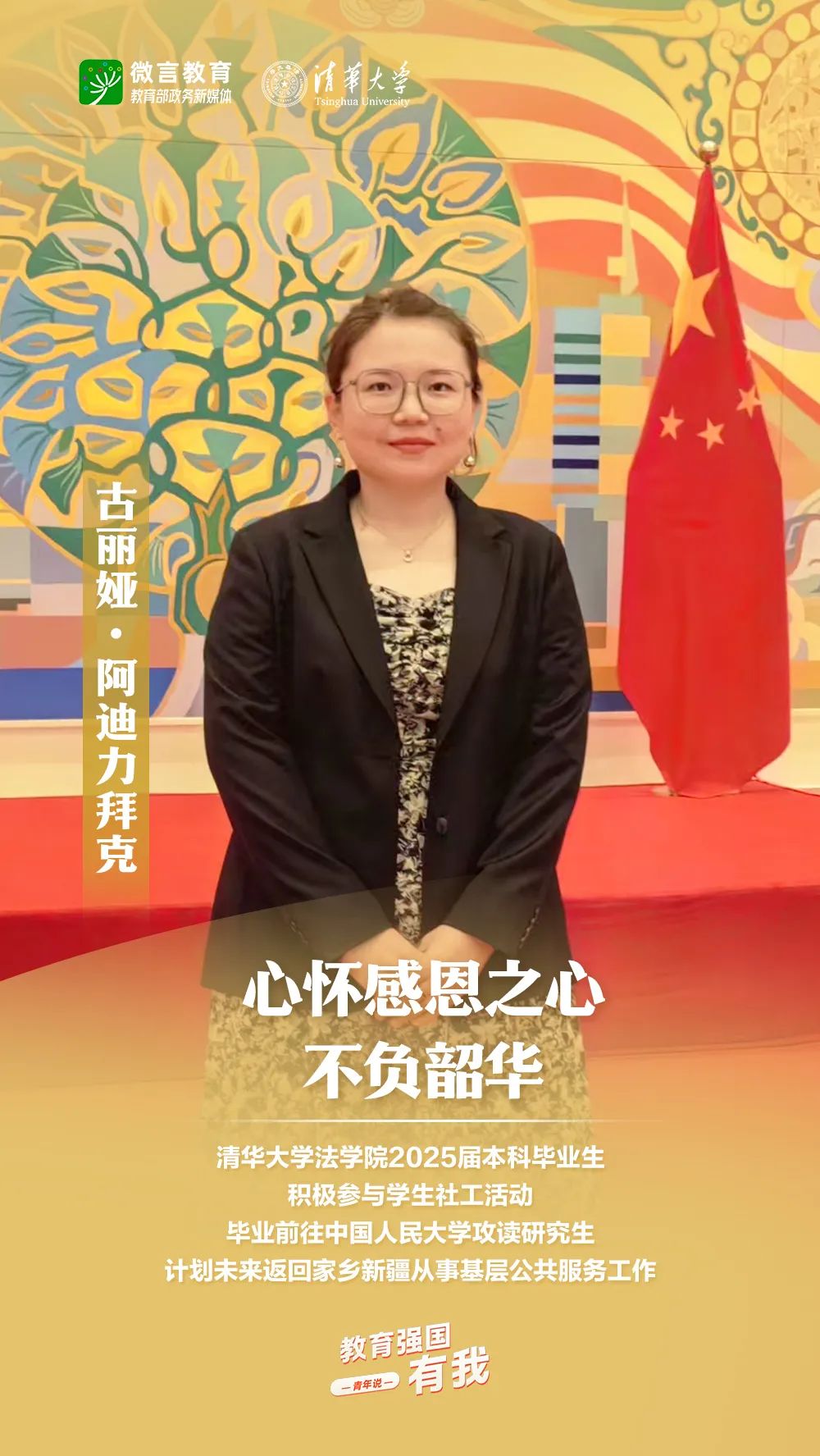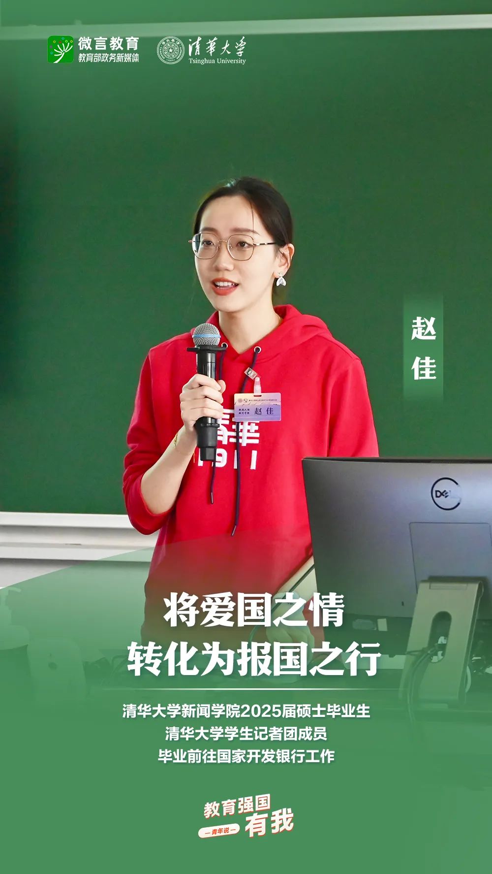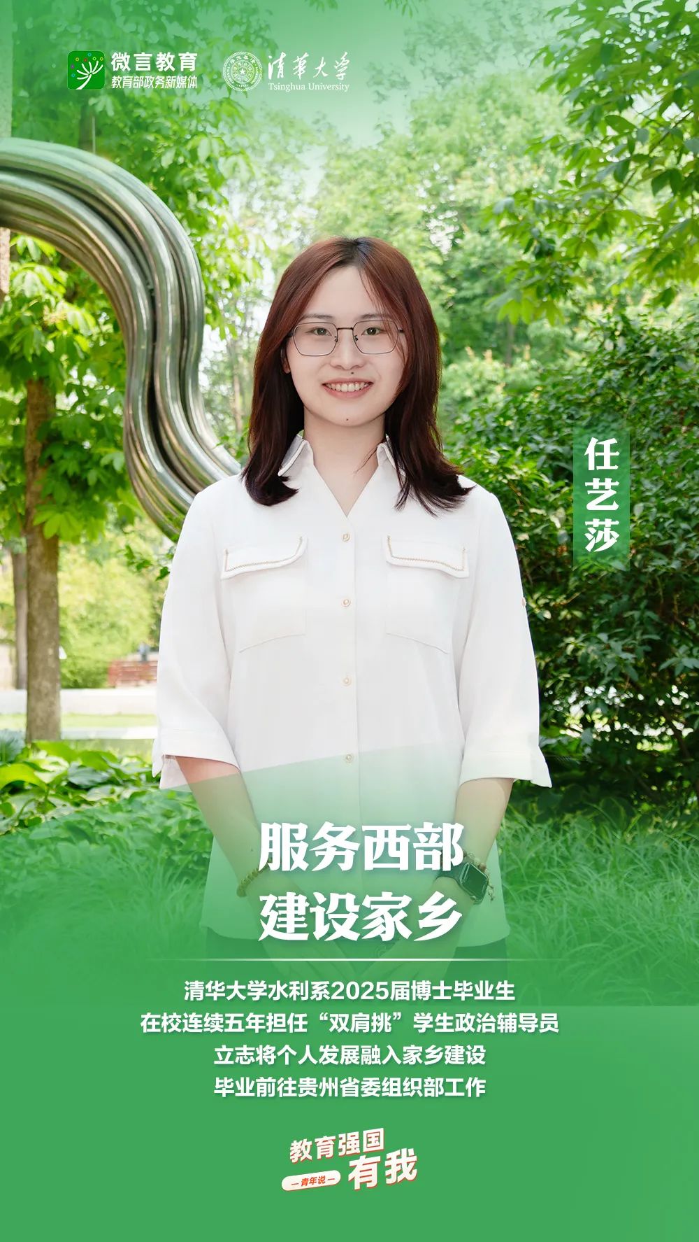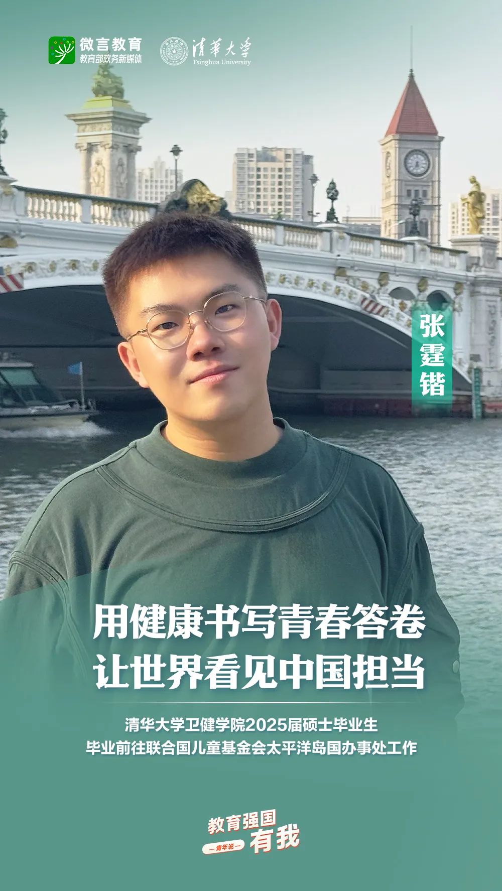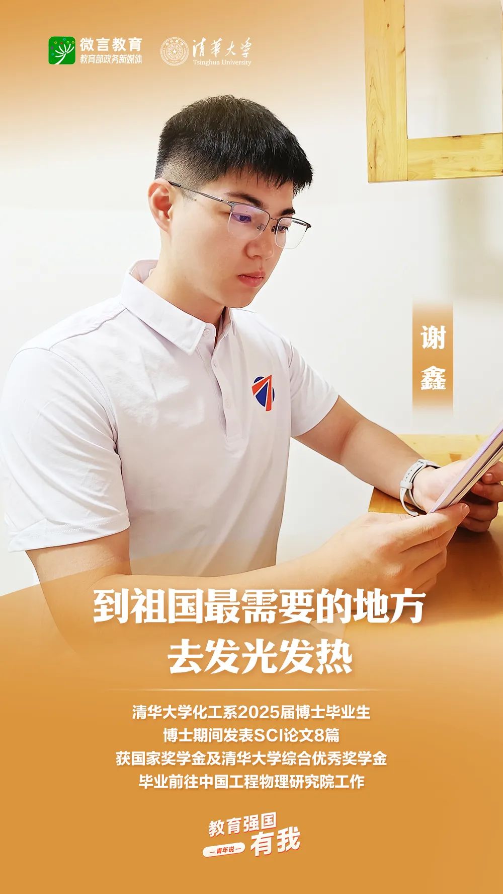 習近平總書記強調(diào),希望廣大青年堅定理想信念,厚植家國情懷,練就過硬本領,發(fā)揚奮斗精神,到祖國和人民最需要的地方發(fā)光發(fā)熱,為中國式現(xiàn)代化建設貢獻青春力量。教育強國建設,青年何為?教育部政務新媒體推出“教育強國,有我!”網(wǎng)絡主題宣傳活動之“青年說(報國篇)”系列,展現(xiàn)青年學子將個人理想融入國家發(fā)展的青春擔當。今天,跟教育小微通過1個視頻和1組海報,一起來看清華大學學子的畢業(yè)選擇——
