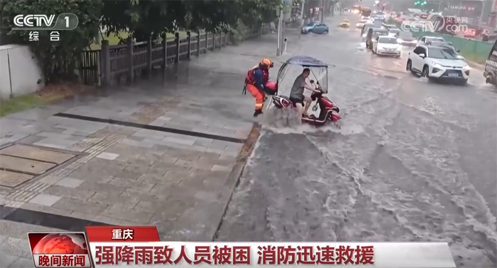 重慶也受到強降雨的影響。在大渡口區(qū)鋼花路紅樓醫(yī)院附近,消防人員發(fā)現(xiàn)一名摩托車騎手被困水中,有被沖走的危險。經(jīng)過救援,該男子被轉移至安全地帶。據(jù)介紹,目前,大渡口區(qū)消防救援局共處置相關警情16起,出動130余人次參與救援工作。