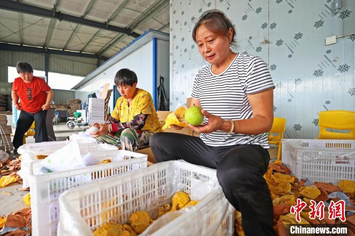 李冬英(右一)和社員一起處理剛采摘下來(lái)的砂梨。董曉斌 攝