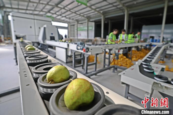 在鎮(zhèn)上新建的百里洲砂梨智慧產(chǎn)業(yè)園,園內(nèi)的精細(xì)化檢測(cè)分選設(shè)備令人眼前一亮:自動(dòng)化分選線上,每顆砂梨都要通過(guò)“X光體檢”,重量、糖度、黑心等內(nèi)部指標(biāo)合格方能進(jìn)入包裝環(huán)節(jié)。