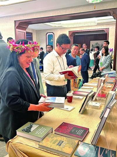 嘉賓在會場翻閱文史哲書籍。光明日報記者 阮紫嫣攝/光明圖片